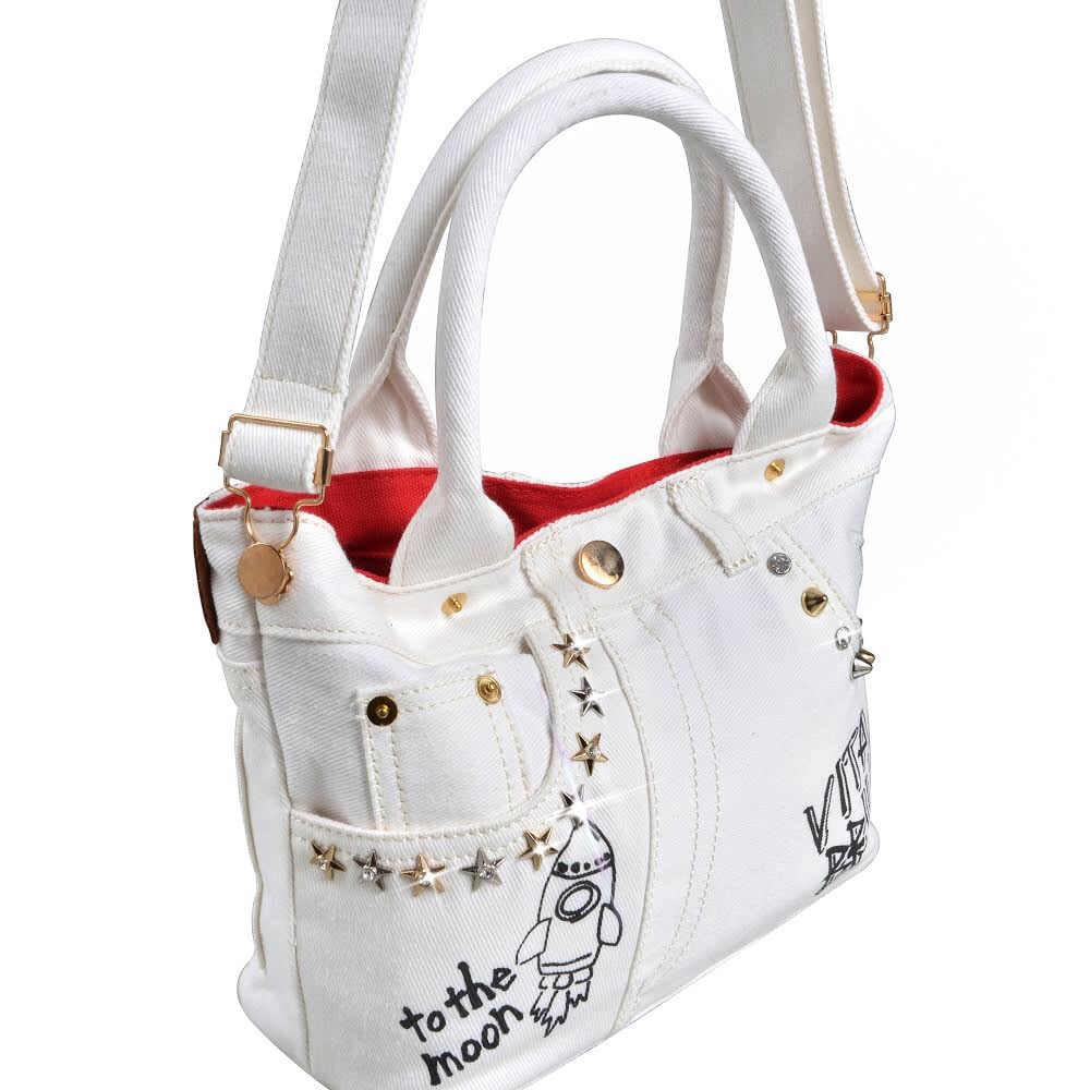 Vitabrillare オリジナル デニムリメイク 風 バッグに ラインストーン スタッズ ラインストーン埋め込み星スタッズ を施し、オリジナルペイントで可愛く、オシャレに仕上げました。