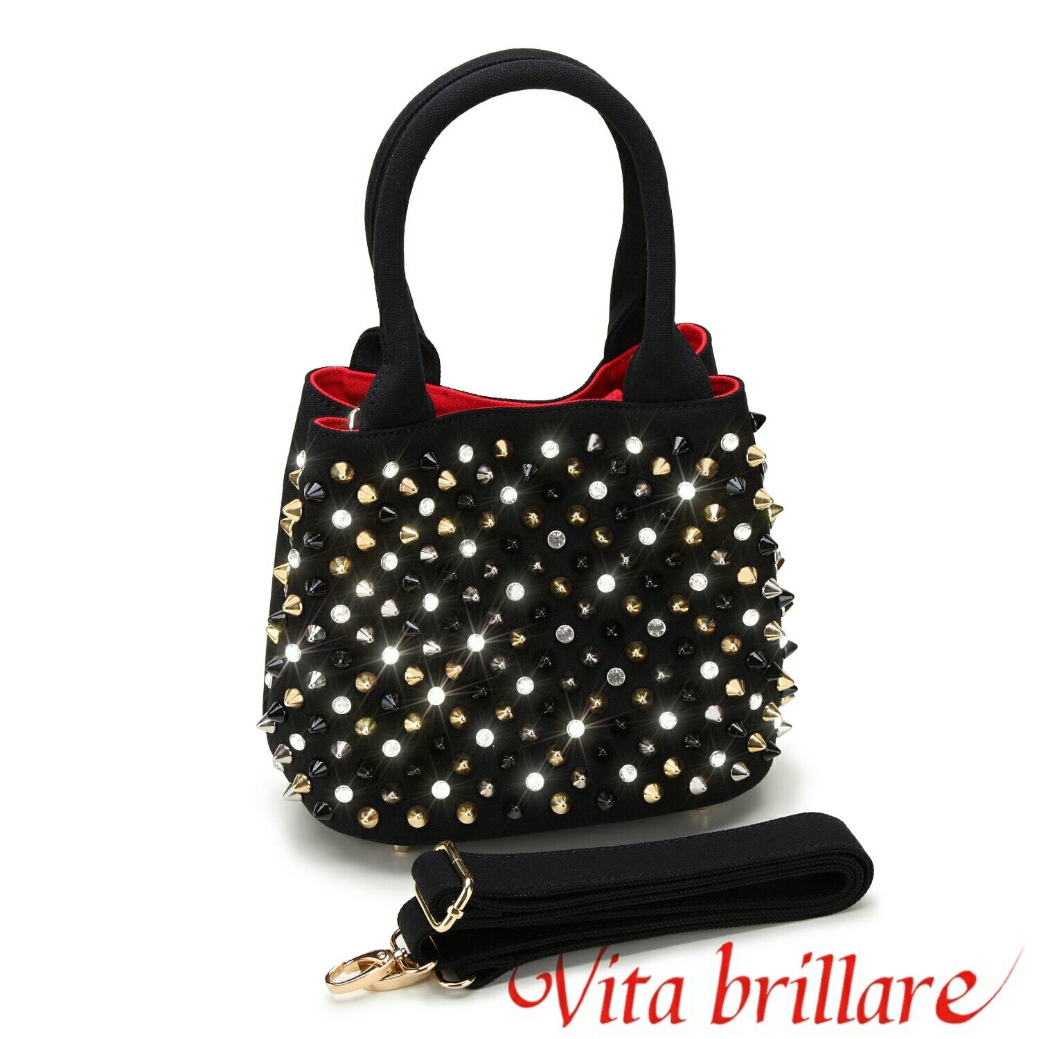 【光輝くラインストーン×スタッズのコンビネーションバッグ】