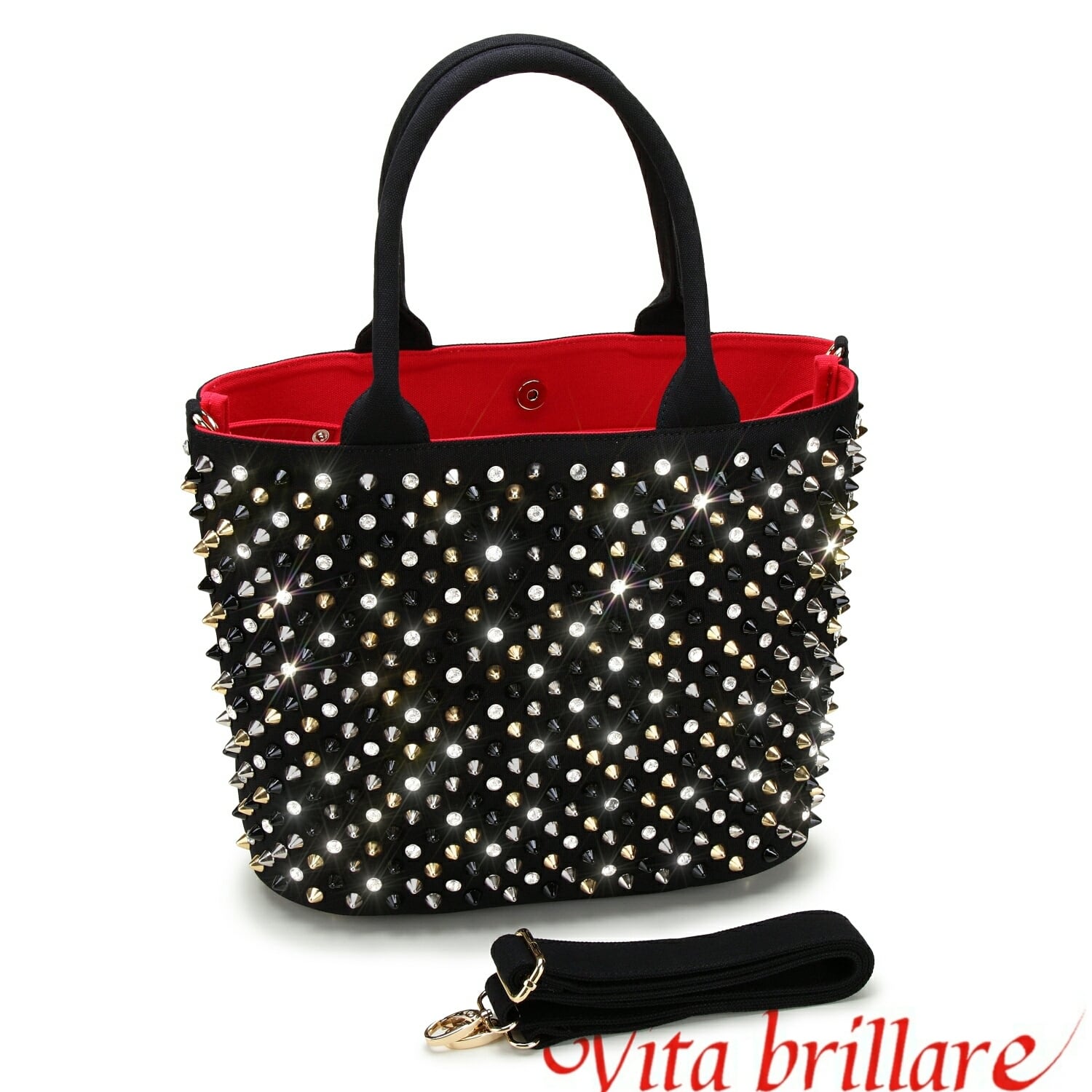ビータ ブリッラーレが厳選し、作製した光輝くラインストーン×オリジナルスタッズを組み合わせ、しっかりとしたコットン生地のキャンバストートバッグです。