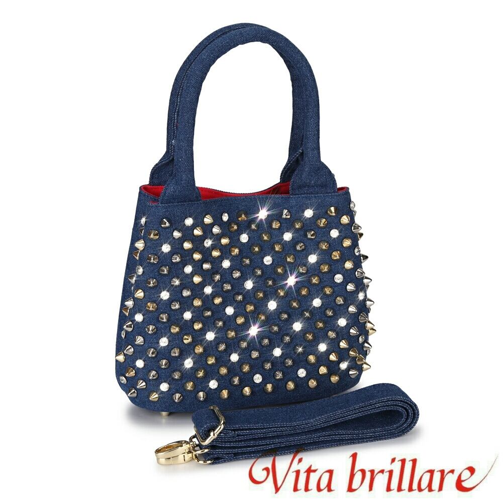 ビータ ブリッラーレが厳選し、作製した光輝くラインストーン×オリジナルスタッズを組み合わせ、しっかりとしたコットン生地のキャンバスクラッチバッグです。