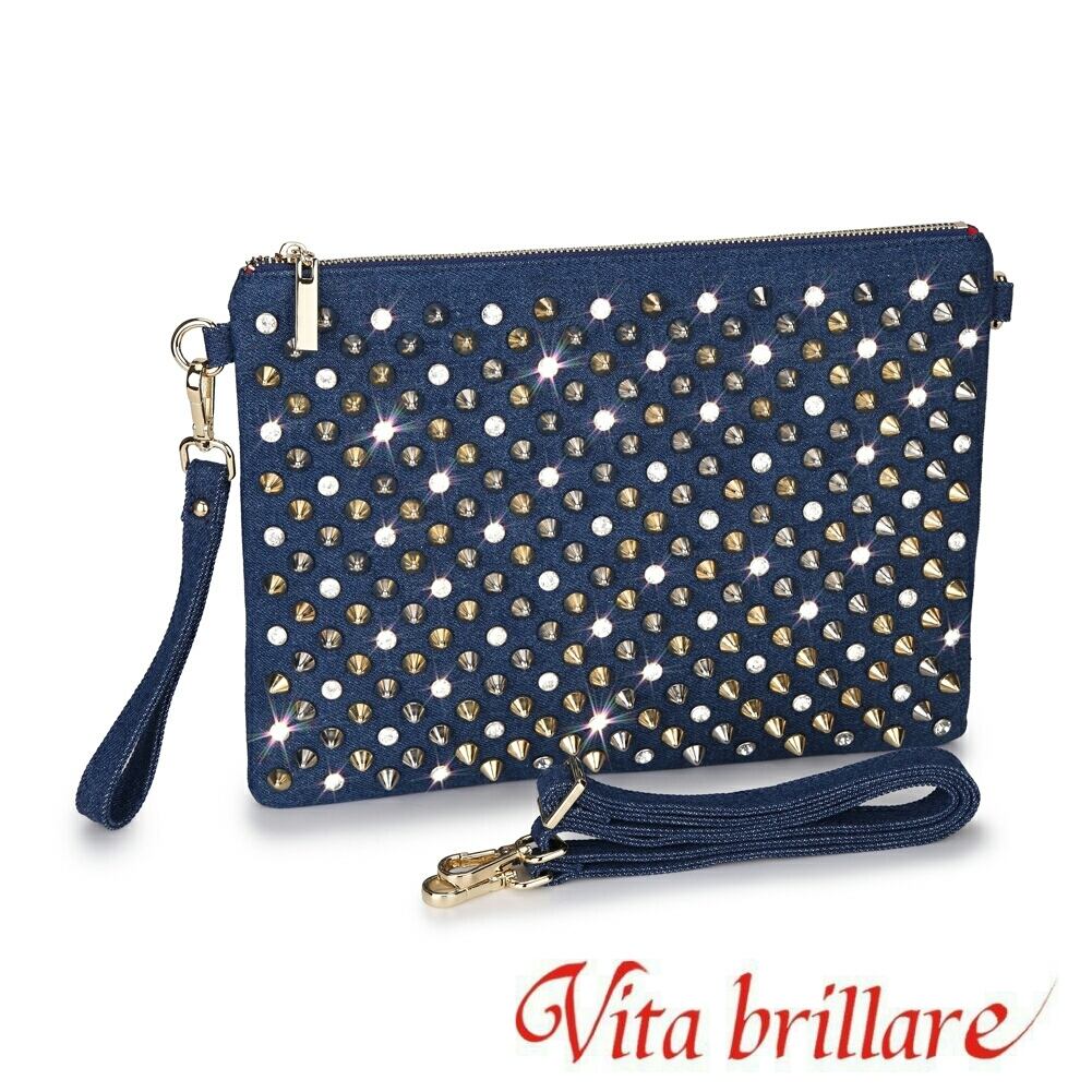 ラインストーン×スタッズ クラッチバッグ デニ